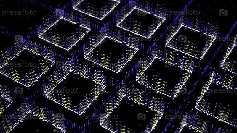 Абстрактный технологический фон с движущимися полосами и мерцающими точками, бесшовная петля. анимация. ряды квадратов, образованных крошечными частицами на черном фоне