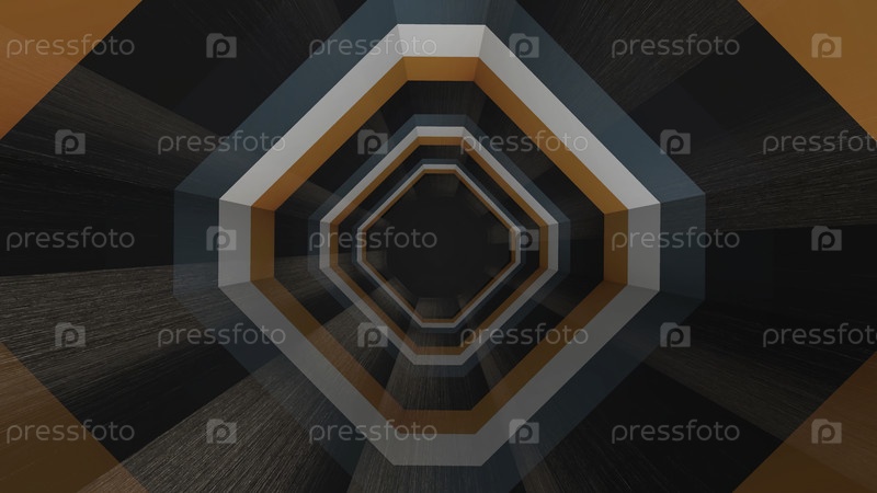 Летать по геометрическому гипнотическому туннелю с черными, коричневыми и оранжевыми полосками, бесшовной петлей