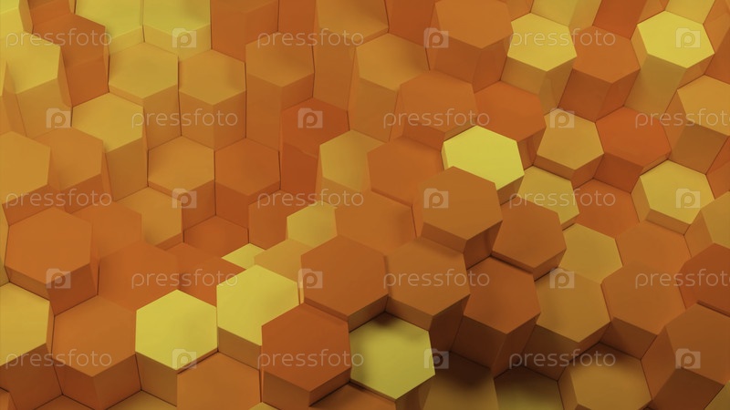 Абстрактные шестиугольники, движущиеся вверх и вниз случайным образом. Дизайн. Движущаяся сетка шестиугольников со светом и тенью