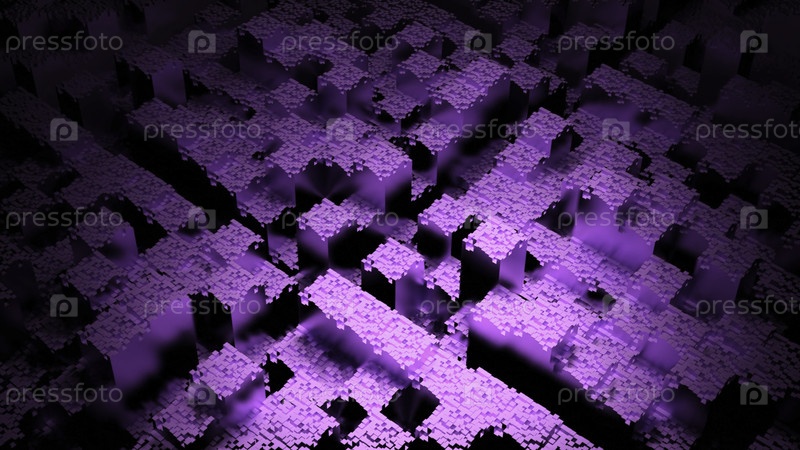 Фон с движущимся потоком трехмерных квадратов. Дизайн. Поверхности с движущимися скользящими квадратами. Абстрактный фон движущегося потока квадратных столбцов