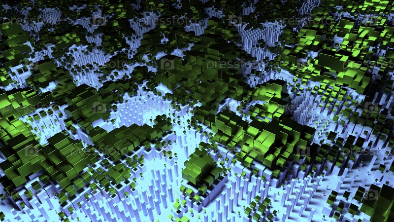 Синий фон с зелеными рисунками.Дизайн.Растущие чертежи в абстракции в 3D-формате на бирюзовом оттенке