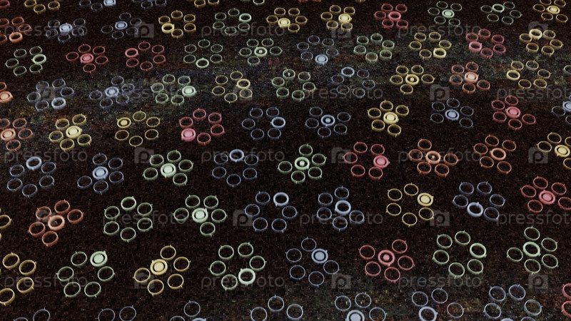 Двигающееся поле небольших красочных кругов, имитирующих силуэты цветов в розовых цветах, бесшовная петля. Анимация. Концепция детства, простые формы, напоминающие цветочный бутон