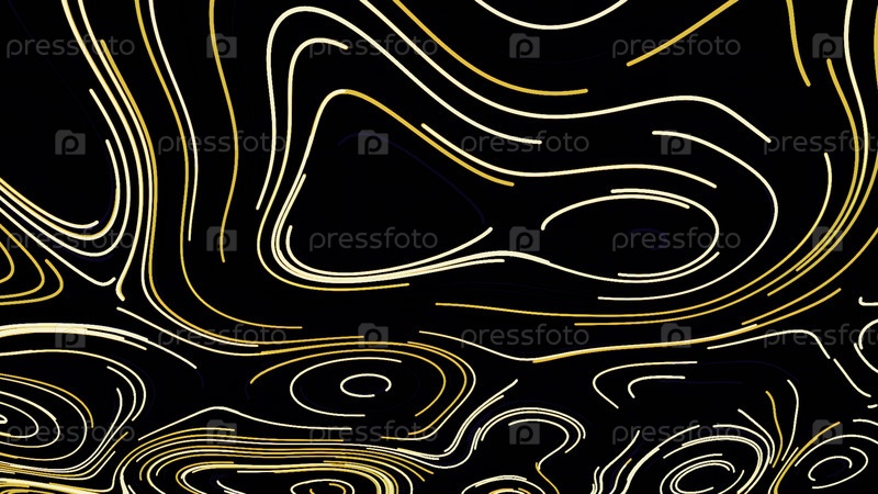 Топографические неоновые контуры линий. Движение. Цветные неоновые линии медленно движутся вдоль топографических контуров. Топографический неонный рисунок на черном фоне