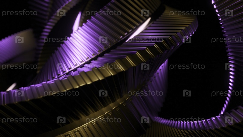Цветная металлическая спираль, вращающаяся в пространстве. Дизайн. 3D-модель абстрактной спирали, вращающейся в пространстве. Свертывающаяся извилистая структура, сделанная из металлических линий