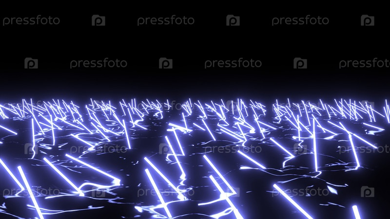Черный фон с освещенными лазерами. Дизайн.Анимация с оранжевыми и синими небольшими полками, которые расположены рядом друг с другом. Высокое качество 4k кадров