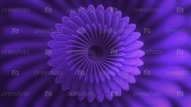 Абстрактный фрактальный рисунок с лиловыми лопатками или лепестками, бесшовная петля. Движение. Поворачивающие абстрактные фиолетовые формы с гипнотическим эффектом