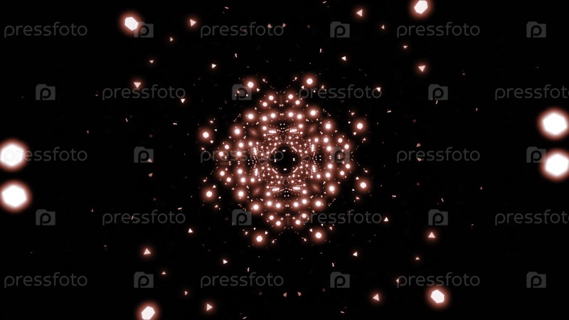 Космический кибертунел с светящимися точками в туннеле. Дизайн. Космическая картина со светящимися точками в тоннеле. Туннель с мерцающим движущимся рисунком сияющих точек в космическом корабле