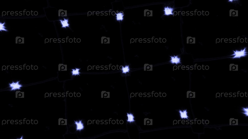 Черный фон с освещенными огнями. Движение. Маленькие горящие звезды в анимации, которые медленно вращаются. Высокое качество 4k кадры