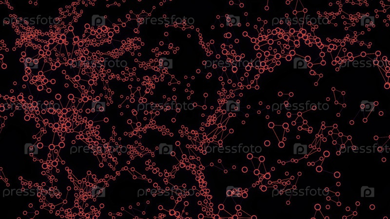Концепция искусственного интеллекта и нейронауки.Дизайн.Облако соединенных розовых клеток на черном фоне, бесшовная петля