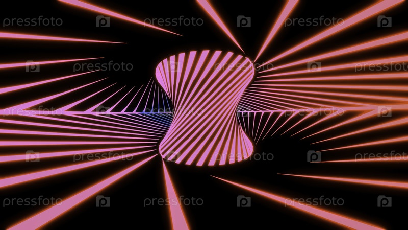 Светящийся 3D-торнадо, сформированный спиральными изогнутыми линиями, бесшовная петля. дизайн. вращающаяся полосатая форма с гипнотическим эффектом