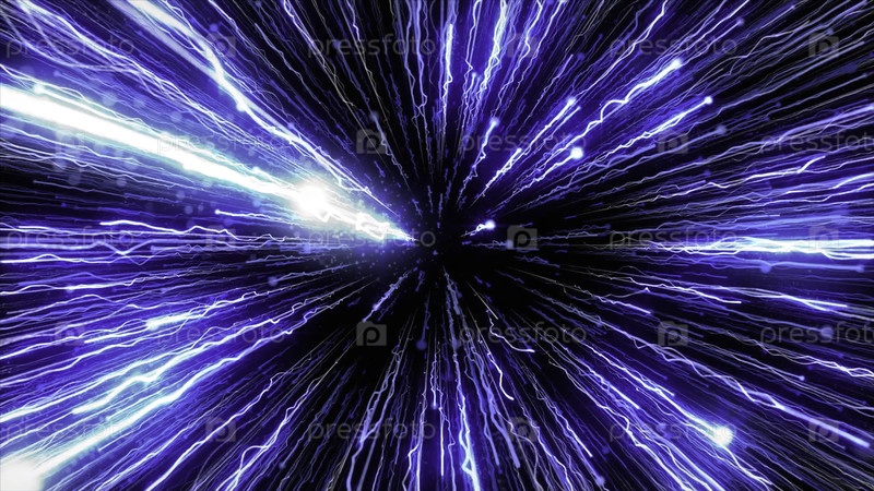 Черный фон.Движение.Синие, зеленые и белые линии, которые выглядят ярко как молнии, понижают кадры в 3D-формате и сжимают друг друга