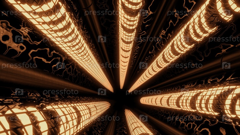 Полет в туннель космического корабля, научно-фантастический коридор космических кораблей. Дизайн. Абстрактный интерьер инопланетного космического корабля
