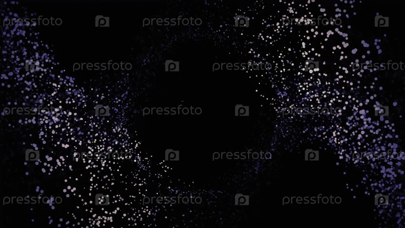 Абстрактные цветные частицы, движущиеся по кругу на черном фоне.Абстракция живых с блестящими фаллоимитаторами, перемещающимися вокруг открывающих прозрачное пространство на черном фоне