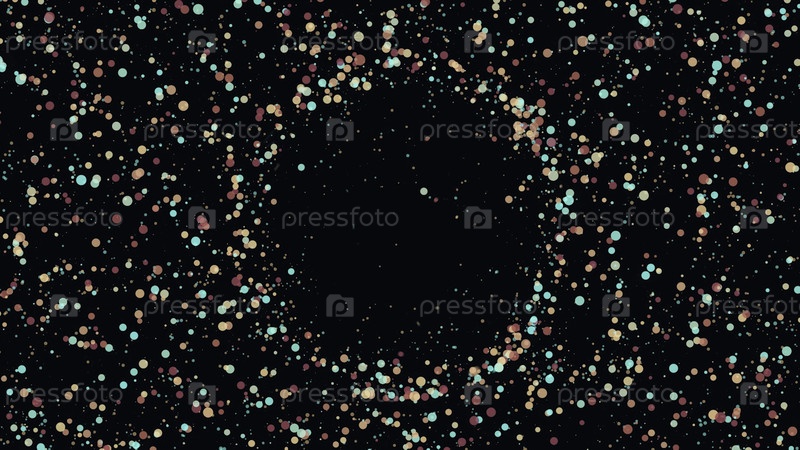 Цветные точки создают круг на черном фоне. Анимация. Фон цветных точек, случайным образом движущихся, создает круг в центре на черном фоне. Праздничное окрашивание пунктов с центром для вставки