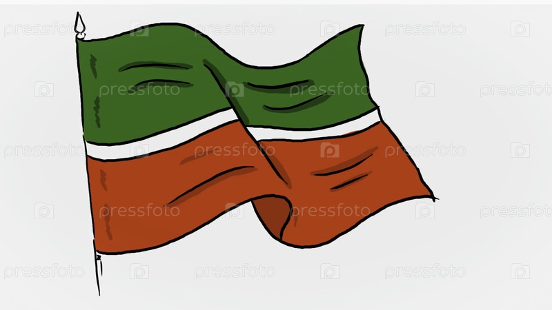 Флаг Татарстана мягко размахивает на флагштоке на белом фоне
