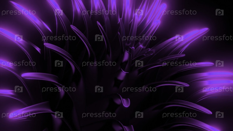 Открывающийся 3D цветок. Дизайн. Абстрактный 3d-цвет движется и открывается. Острые листья 3d-цветов перемещаются в цвете