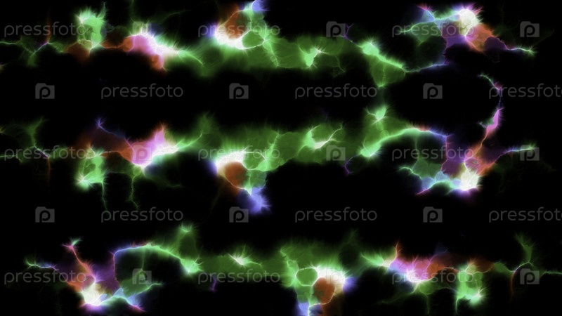 Черный фон с зеленым и лужиц краски. Движение. Прякающие пятна в анимации, которая будет распространяться