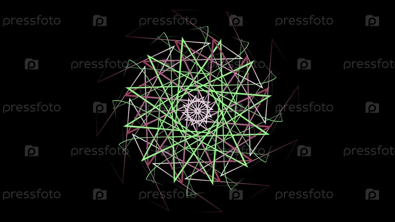 Гипнотический вращающийся рисунок цветных геометрических линий. Сток-анимация. Красочный рисунок изогнутых линий создает эффект калейдоскопа на черном фоне