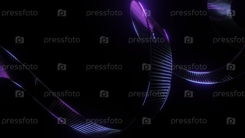 Абстрактный градиент, текущий и вращающийся спираль на темном фоне. Дизайн. Полосатая спиральная форма формирования тоннеля