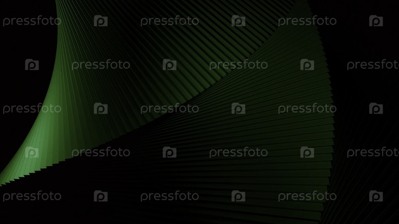 Полосатая 3D-структура изгибается и вращается. Дизайн. Изогнутая абстрактная спираль, движущаяся на черном фоне. Изогнутая структура вращается в темном пространстве
