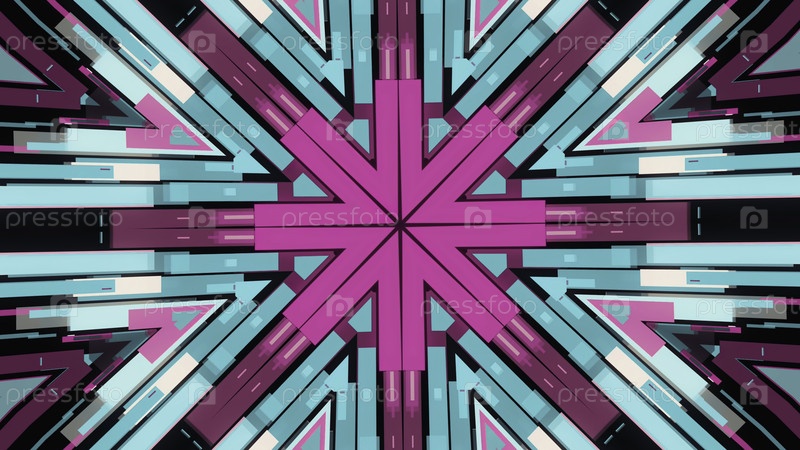 Красочный абстрактный геометрический калейдоскоп с движущимися узорами, меняющими свой цвет. Анимация. Гипнотическая модель калейдоскопа с анимированными геометрическими формами