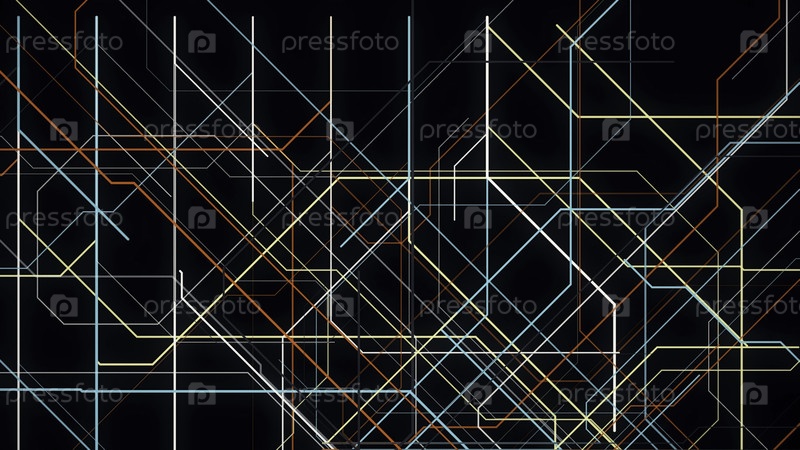 Электронная карта метро.Анимация.Неонные линии перемещаются по указанному маршруту и создают схематическую анимацию на черном фоне