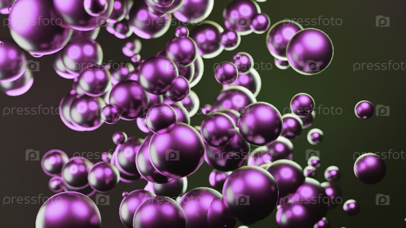 Движущийся поток ярких шаров. Дизайн. Восходящий поток ярких 3D пузырей в пространстве. Яркие пузыри быстро перемещаются в потоке