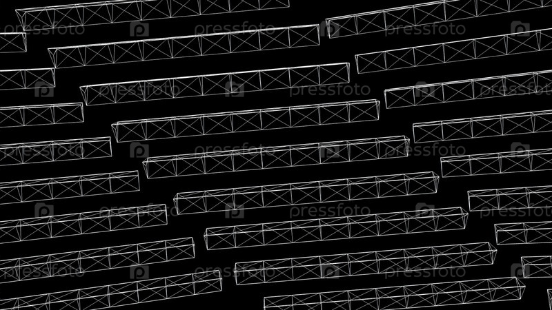 Абстрактные белые треугольные формы на черном фоне. анимация. вращающиеся 3D вытянутые конструкции треугольников. прозрачные удлиненные треугольники вращаются, образуя механический фон