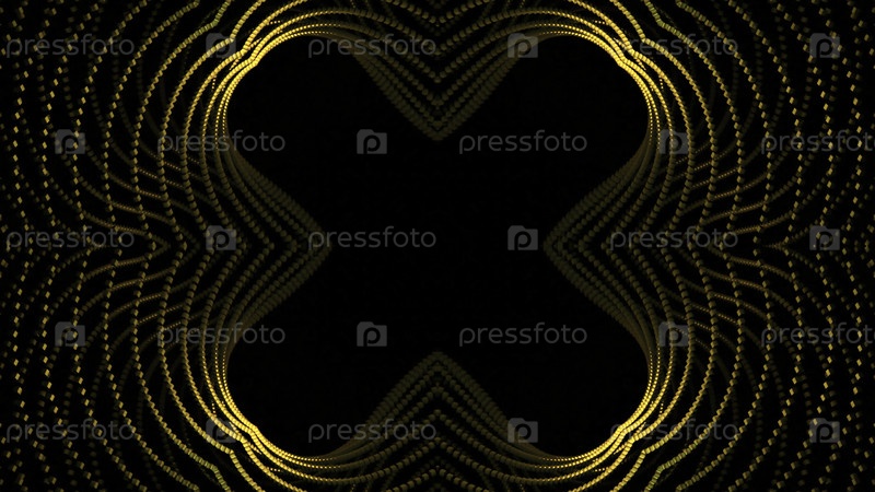 Геометрически сгенерированный рисунок линий, движущихся на черном фоне. Дизайн. Геометрический рисунок с цветочными кривыми перемещается на черном фоне. Точечные линии передвигаются в гипнотическом геометрическом рисунке