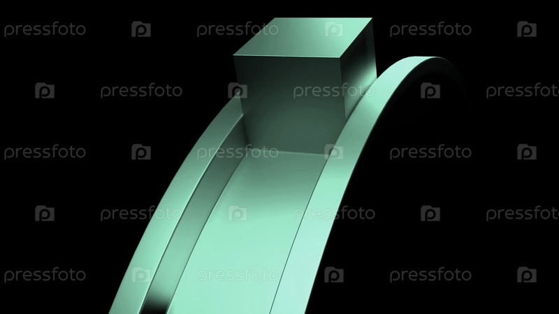 Абстрактное металлическое зеленое круглое колесо с движущимися 3D-кубиками. Дизайн. Сюрреалистическая вращающаяся фигура