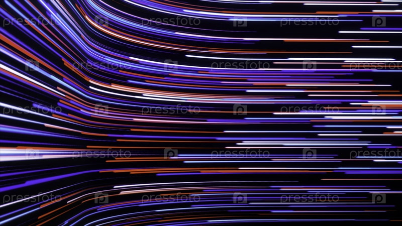 Линии движутся в футуристическом потоке с изгибом. Движение. Красочный поток линий в киберпространстве. Поворачивай поток цветными полосами
