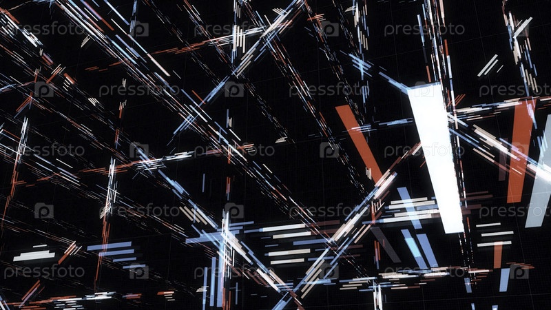 Абстрактная анимация 3D-матрицы киберпространства с штрихами.Анимация.Многоуровневый на черном фоне 3D пространство с различными потоками матричных штрихов