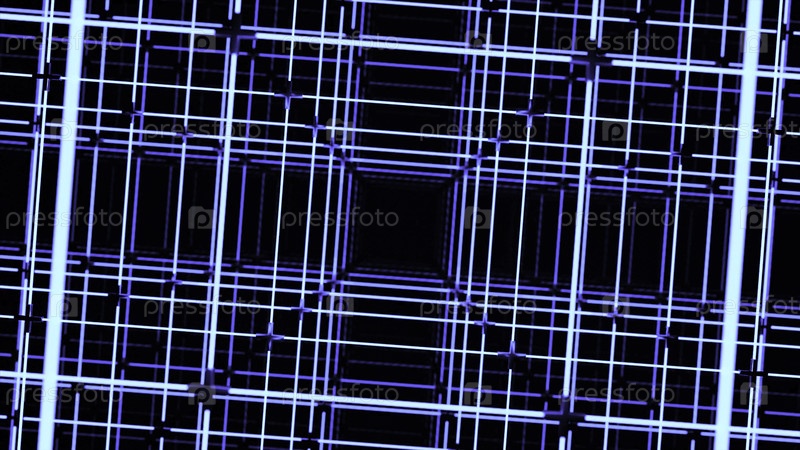 Вращающаяся анимация со строительством квадратных линий. дизайн. пространственная решетка с линиями и квадратами. электронная сеть с квадратным туннелем