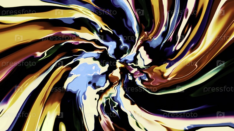 Движущийся поток красочной спирали красок.Движение.Замедление потока цветов в движущейся спирали на черном фоне.Спираль жидких изогнутых линий краски