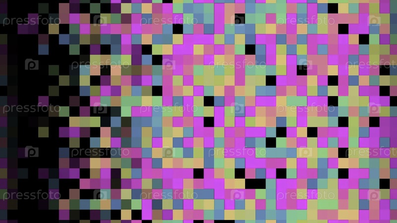 Абстрактная анимация многоцветного пиксельного пятна, движущегося горизонтально на черном фоне