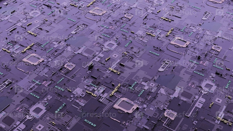 Движущиеся частицы на компьютерной доске. дизайн. 3D-карта с движущимися частицами. мигающие частицы на поверхности чипа компьютера