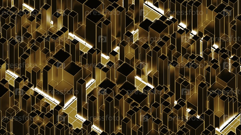 Абстрактный 3D-город с неоновыми линиями Дизайн 3D-изображение города, выполненное из кубиков и линий неонных дорог Простая анимация с прямоугольниками и неоновыми 3d городскими дорогами