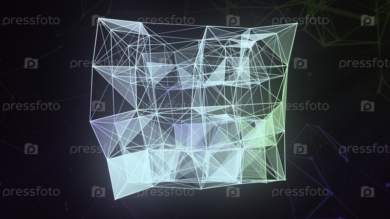 Линейные сплетения с геометрическими формами. Движение. Геометрическая форма с линиями и углами в футуристической манере. Красивый геометрический дизайн с линейными и треугольными соединениями в компьютерном пространстве
