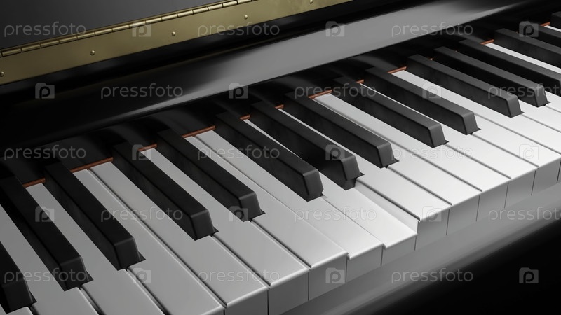 3D-анимация игры на фортепиано. Дизайн. Клавиши пианино играют сами по себе. Призрачная клавишная игра реалистичного фортепиано. Музыка и инструменты