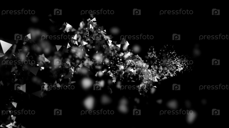 Черный фон. Дизайн.Легкие конфеты в яркой компьютерной графике, которые летают в разных направлениях непрерывно