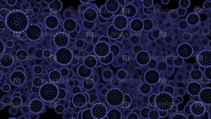 Взаимодействие между бактериями.Дизайн.Абстрактный медицинский фон с быстро распространяющимися вирусными клетками синего цвета