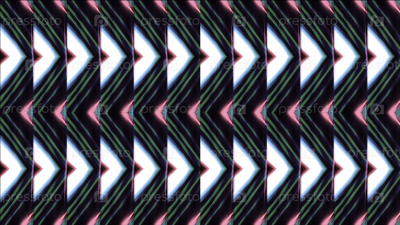 Гипнотический повторяющийся рисунок треугольных линий, мерцающих при свете неона. Красивый калейдоскопический рисунок треугольников