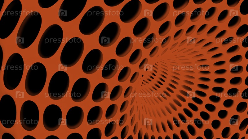 Красно-желтый фон.Дизайн.Яркий туннель, на котором перемещаются черные круги в абстракции.Высококачественные кадры 4k