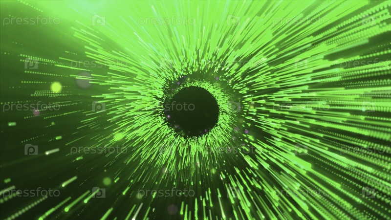 Яркие летящие искры частиц, вращающиеся в круге, следуют за мигающей звездой.Движение.Фон космического пространства с летающей кометой