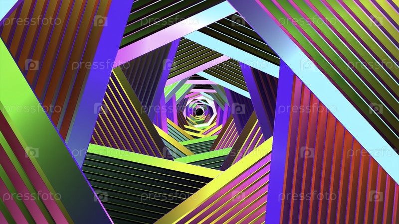 Абстрактный красочный спиральный туннель с гипнотическим и психоделическим эффектом, плавная петля.Движение.Мигающие яркие контрастные огни и цвета вращающегося коридора