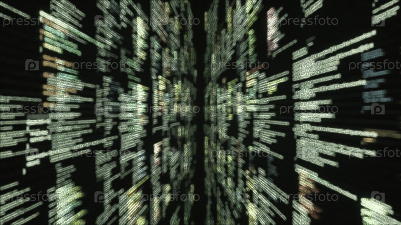 Компьютерный скрипт бесконечно печатается на черном фоне с размытым эффектом.Анимация.Программирование и создание новых строк хакерского кода, плавная петля