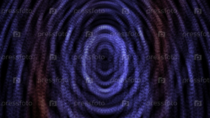Абстрактные синие и красные блестящие частицы, образующие кольца и эффект глубокого туннеля. Движение. Красочные точки, образующие круги на черном фоне