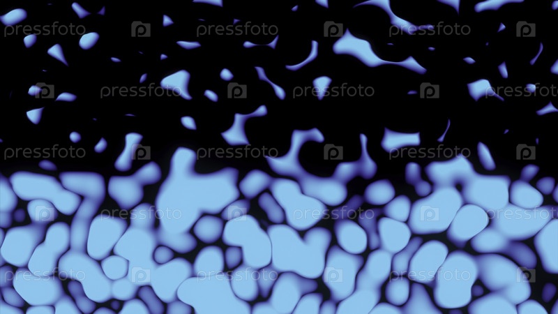 Фон с движущимися 3D-точками на черном фоне. Дизайн. Многие цветные трехмерные пятна, перемещающиеся в потоке на черном фоне. Переход от движущихся плотных точек