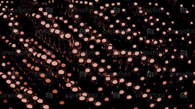 Белые и красные флеш-лампы на черном фоне. Дизайн. Светящиеся лампочки, сделанные в абстракции с движениями