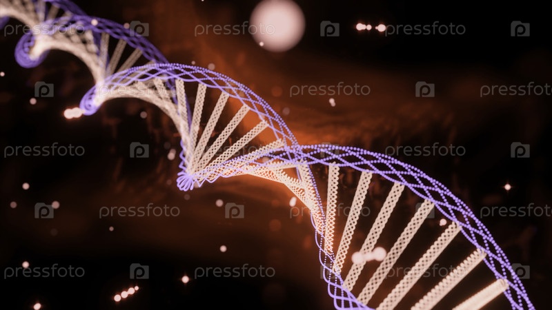 Реалистичная двойная спираль ДНК 3D. Дизайн. Научная концепция, светящаяся неоновая спиралка, концепция человеческой жизни и эволюции